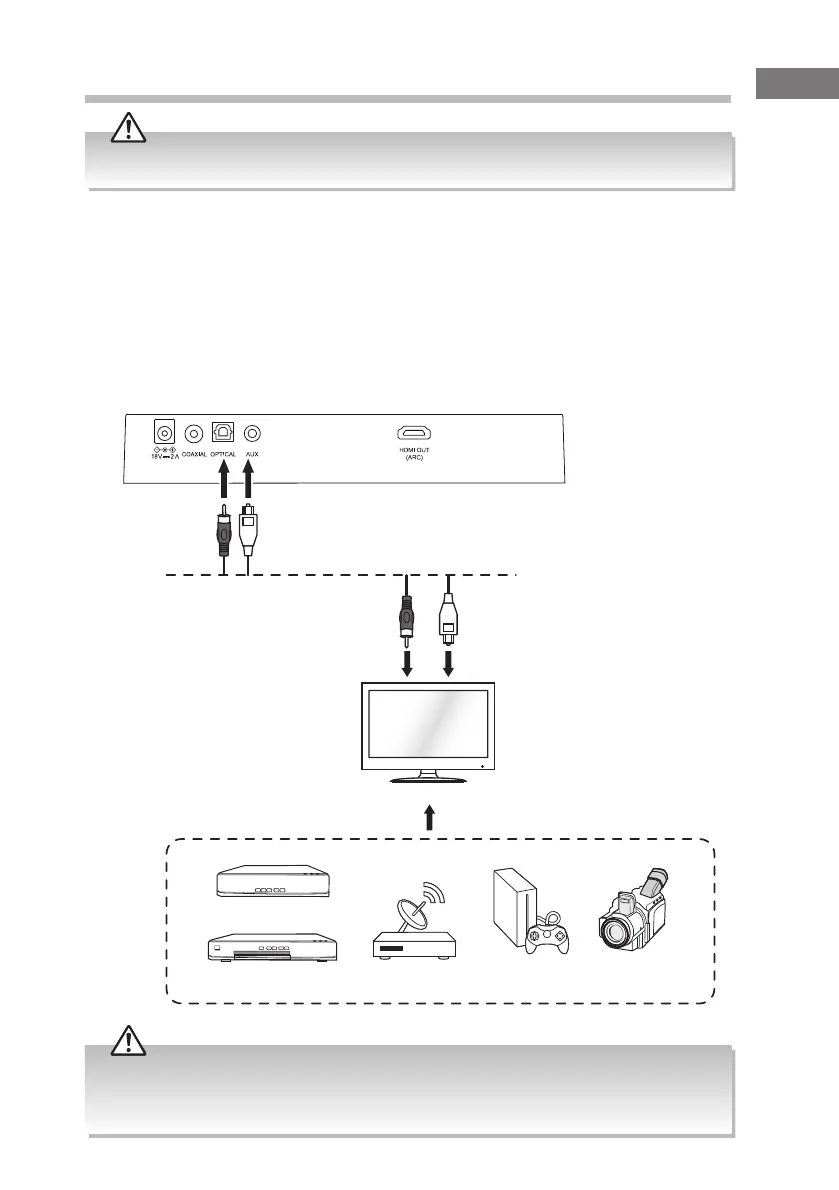 Use an optical cable (not included) / coaxial cable (not included) to connect the soundbar’s