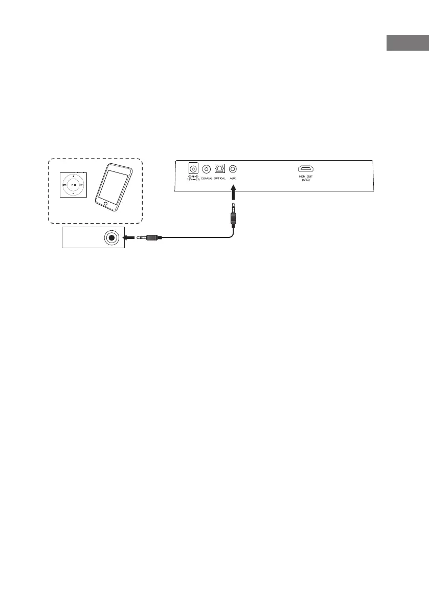 Use a 3.5mm to 3.5mm stereo audio cable (included) to connect the soundbar’s AUX to the
