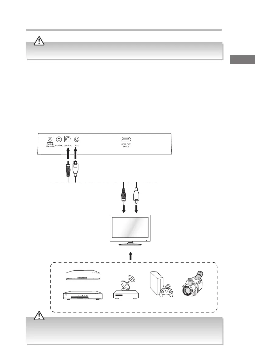 att alla ljudanslutningar på Soundbar är anslutna inna du ansluten nätkabeln.