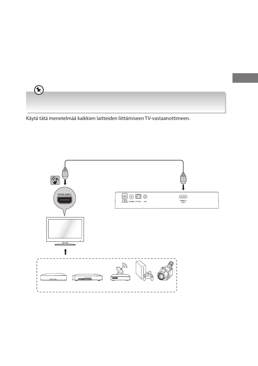 Nauttiaksesi ARC-toiminnosta, varmista, että TV-vastaanottimesi on ARC-yhteensopiva ja
