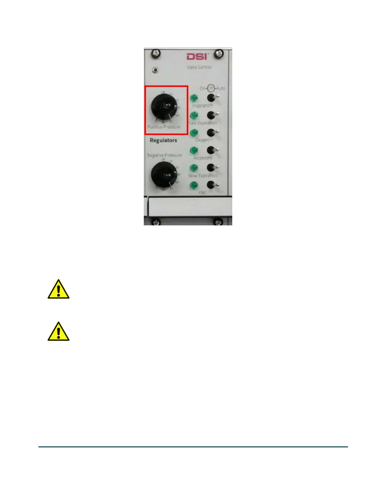 Confirm the new pressure by watching the Positive Pressure display. The displayed pressure is approximate so
