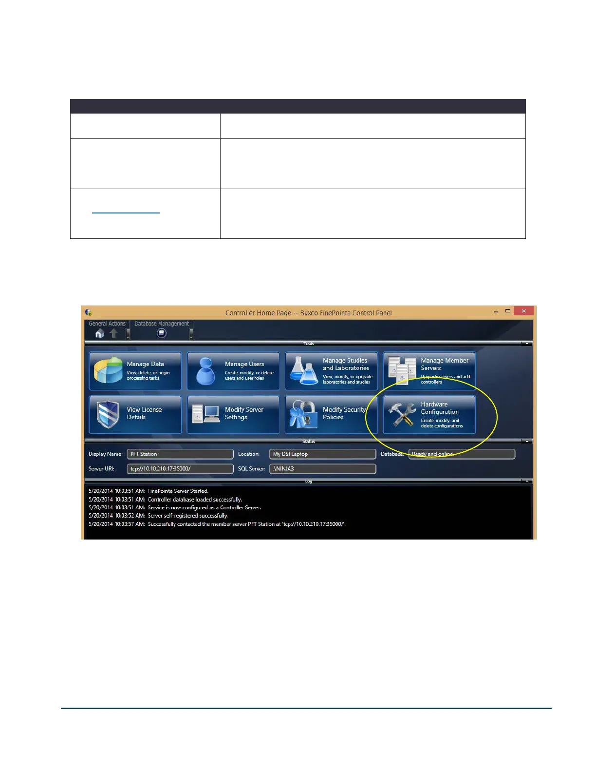 Data Upload, Modify Server Settings, and Hardware Configuration Buttons.