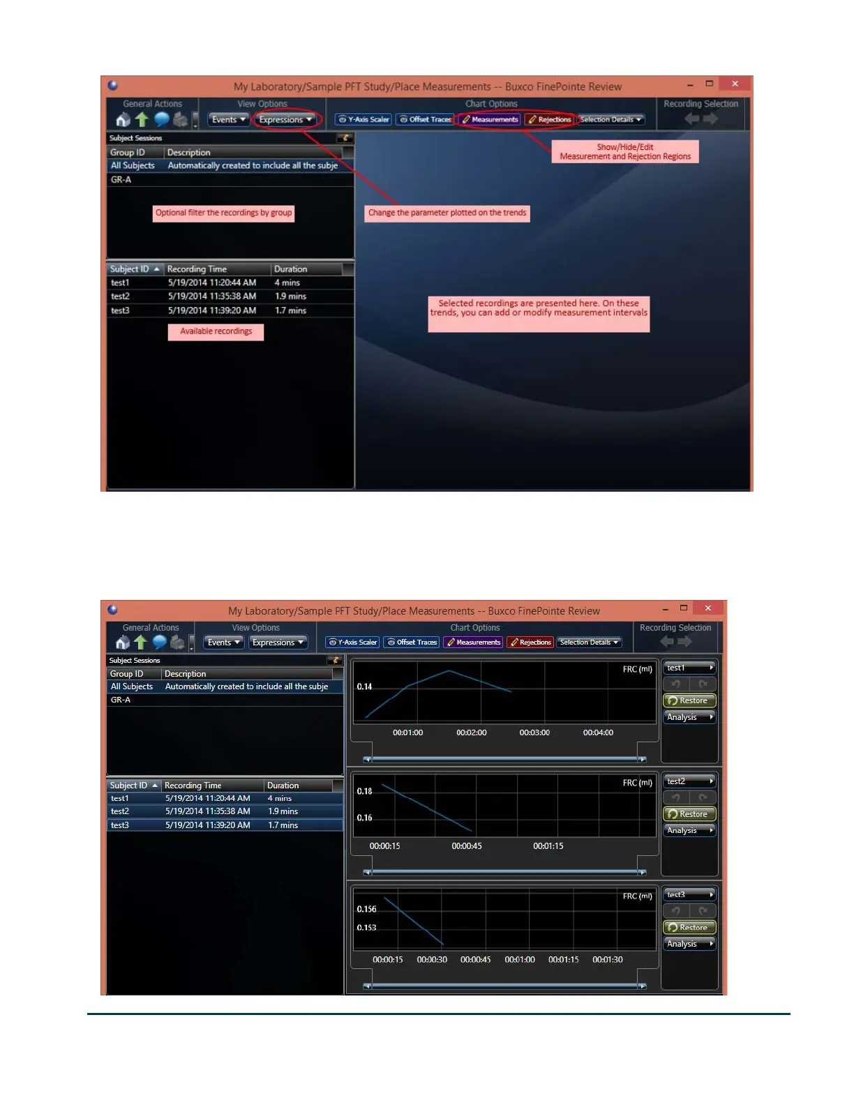 Select the recordings you want to adjust or create measurements on. When you do, trends are plotted in the area