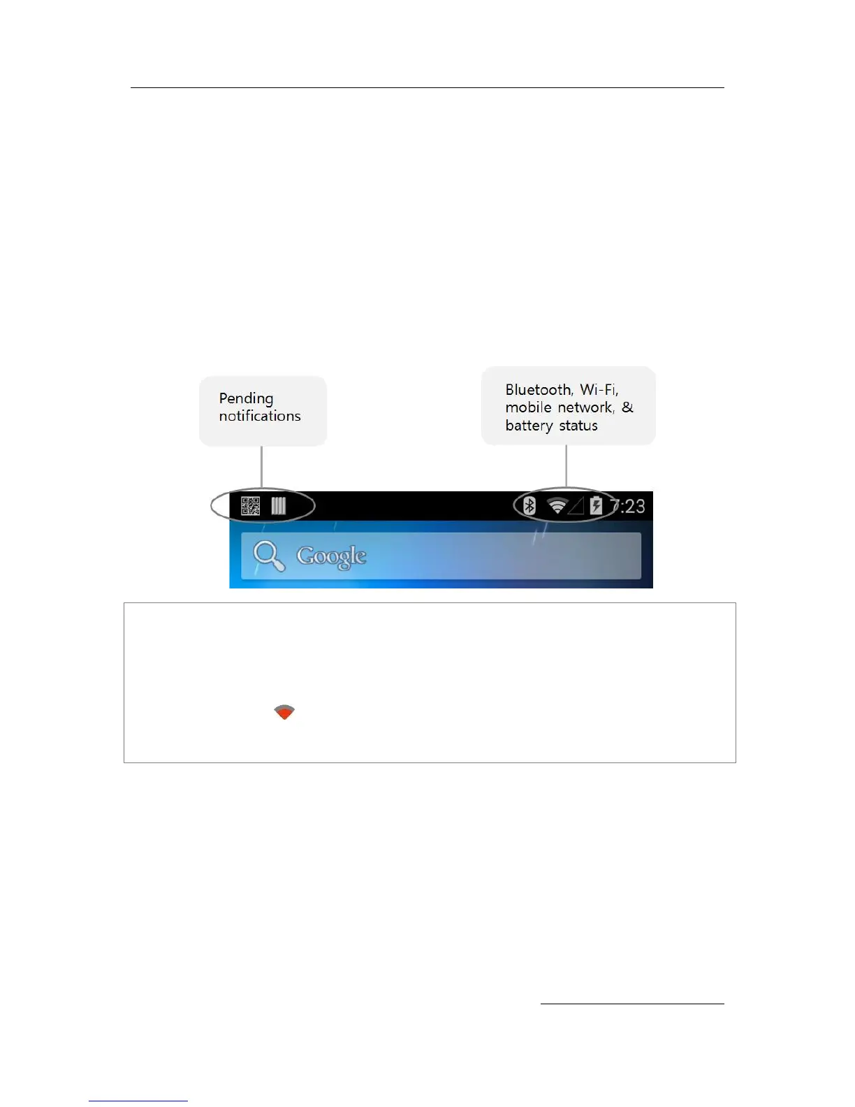 When a notification arrives, its icon appears at the top of the screen. Icons for pending