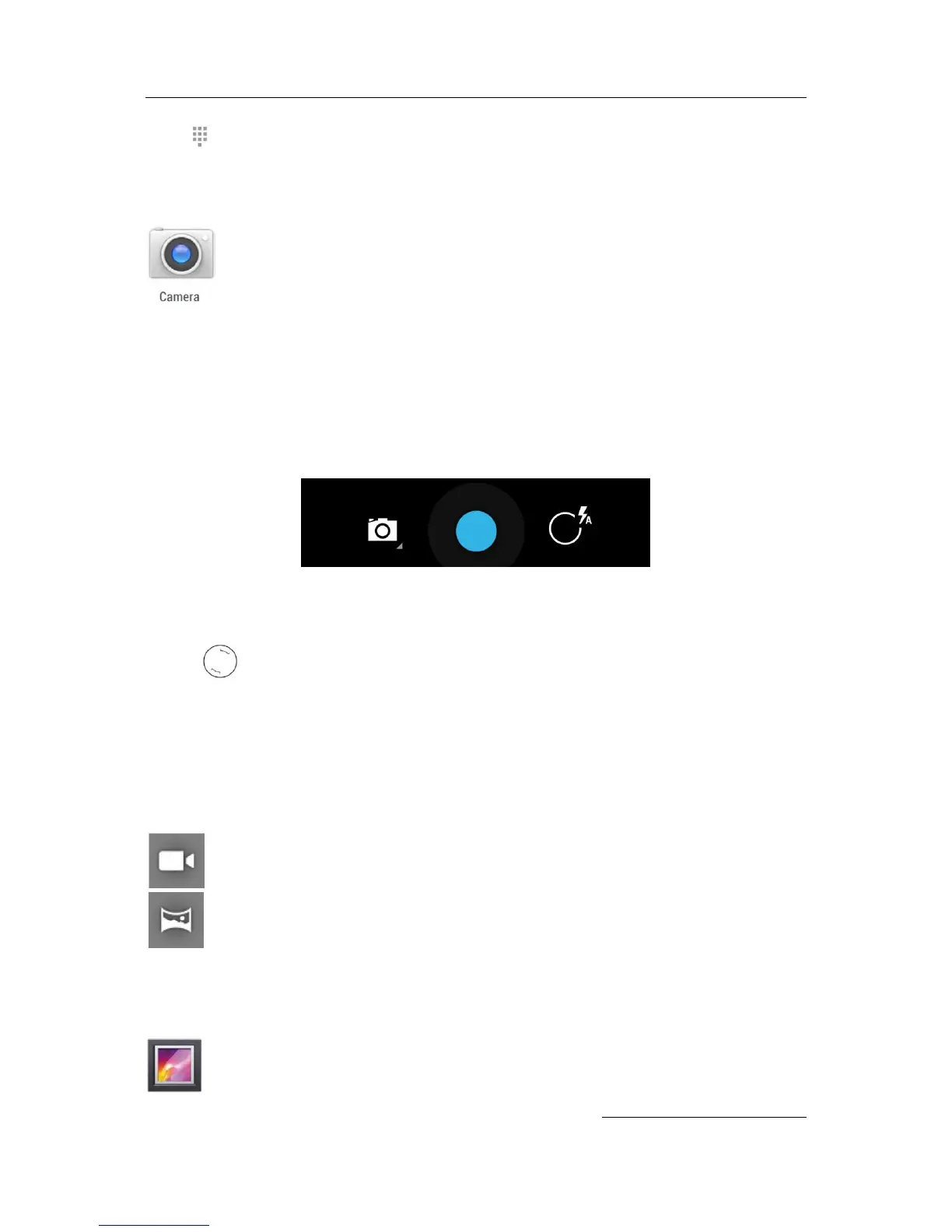 The camera icon indicates Camera mode. To take a picture in this mode: