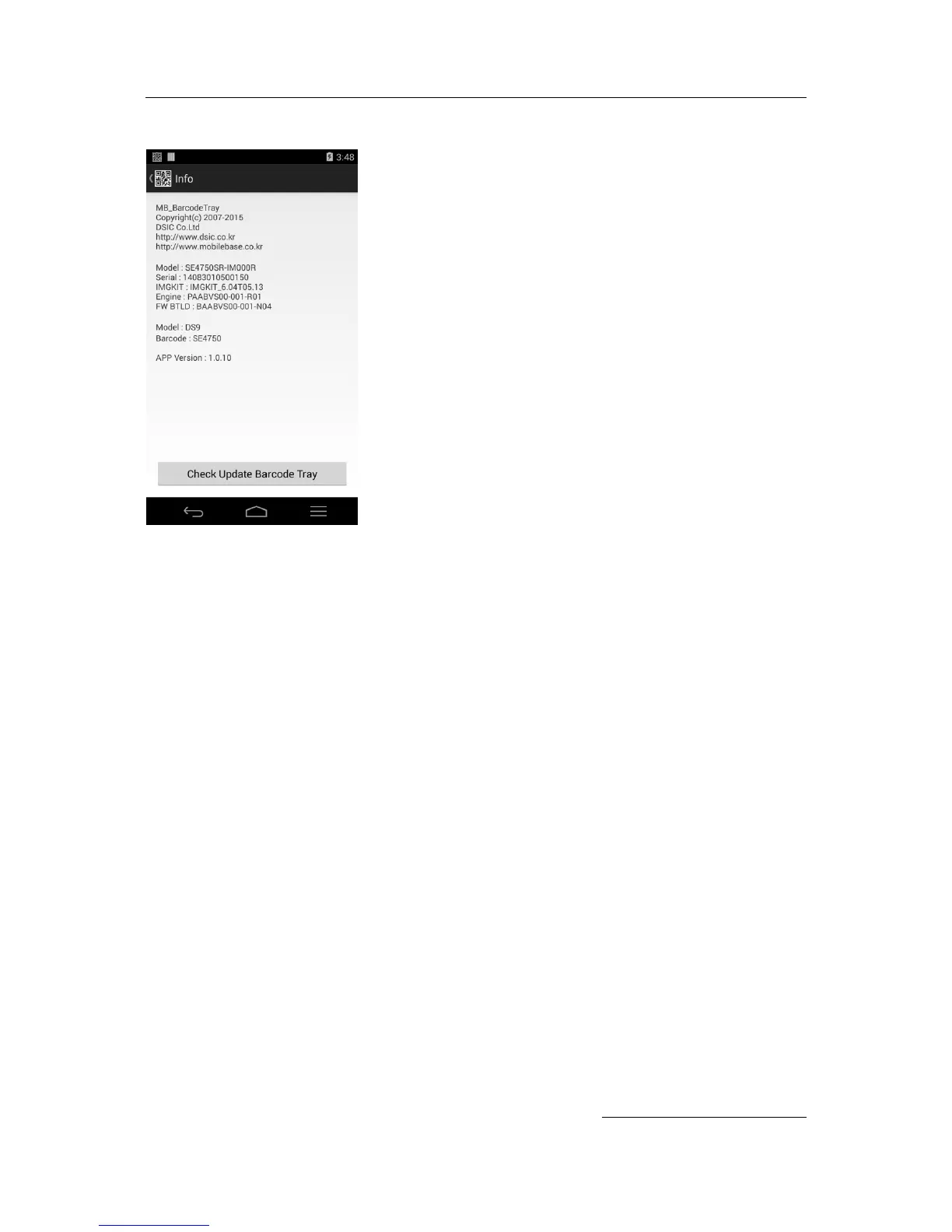 application version information of your barcode scanner.
