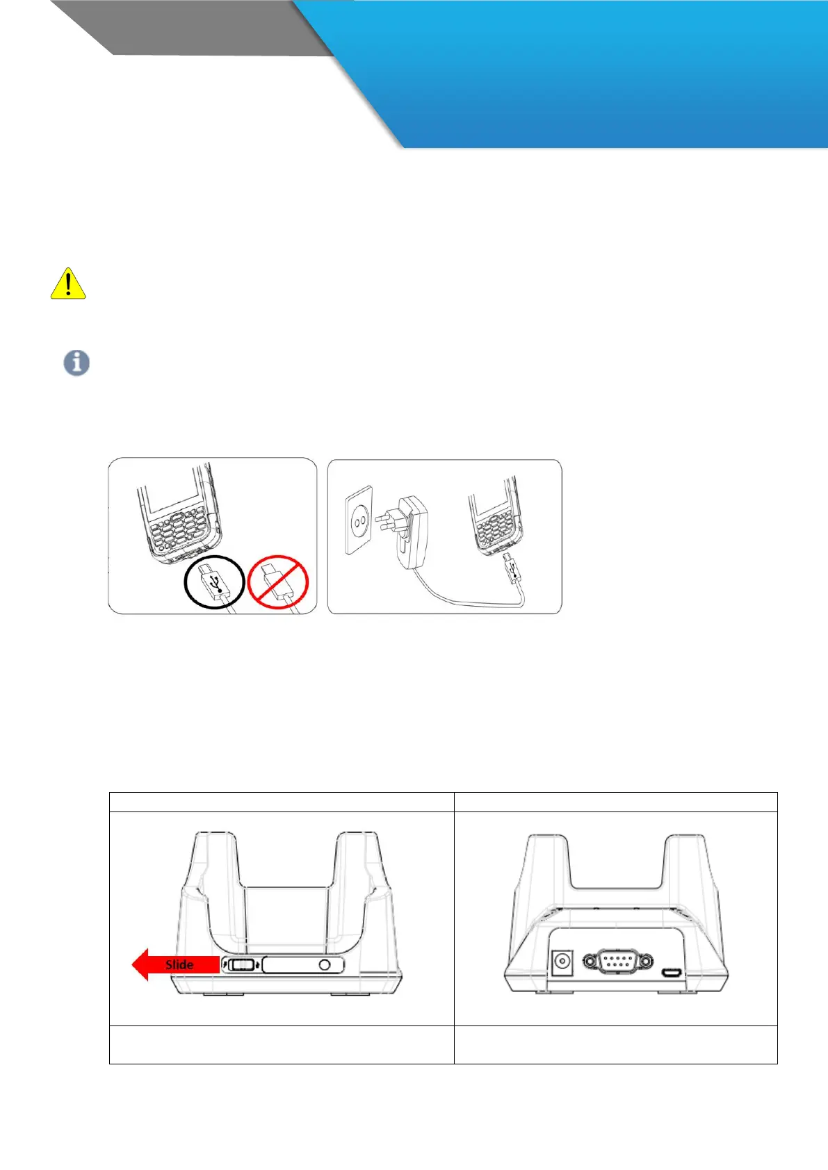 Verity that the terminal battery is installed prior to connection. If the battery is not properly installed and the wall charger is connected, the terminal