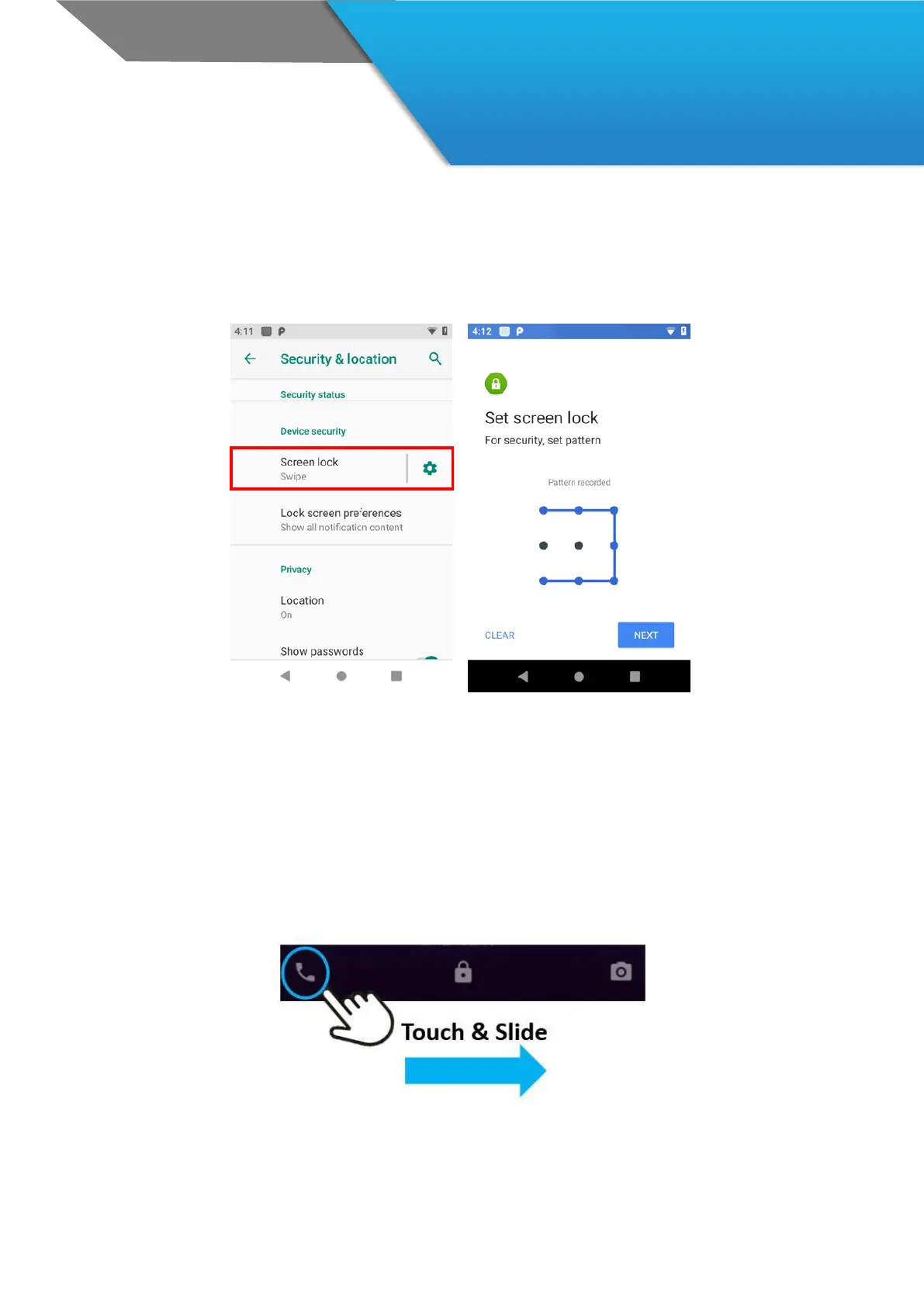 2. Touch the type of lock you’d like to use.