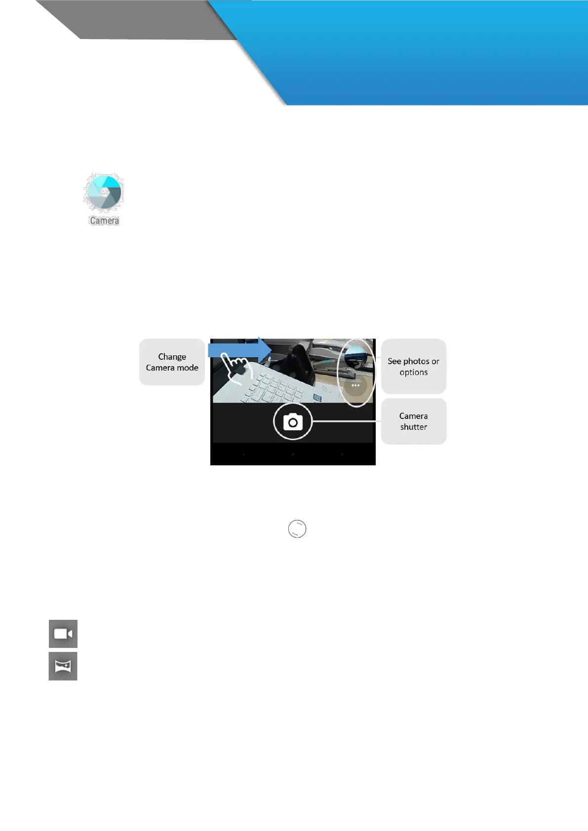 The camera icon indicates Camera mode. To take a picture in this mode: