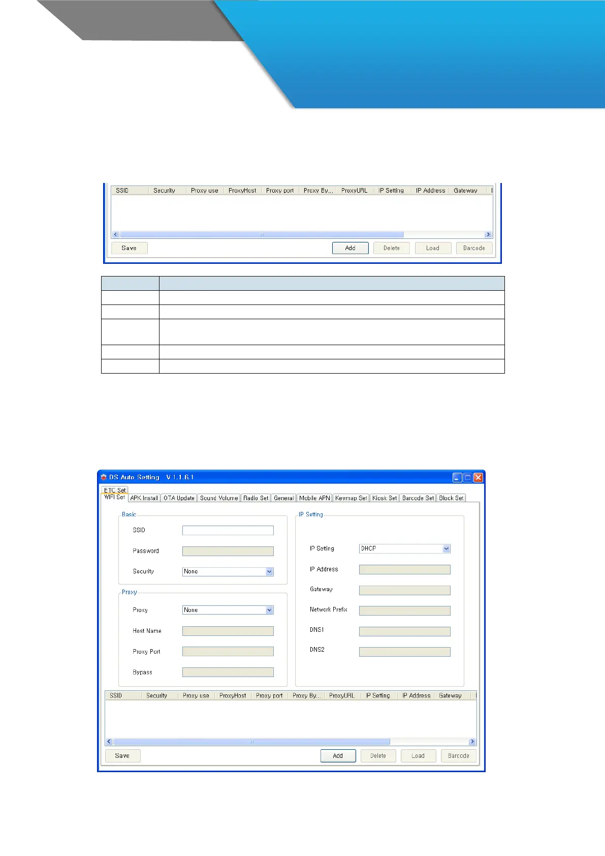 Specify the wifi setting. When you scan the barcode, the setting will be applied automatically and the defined wifi will