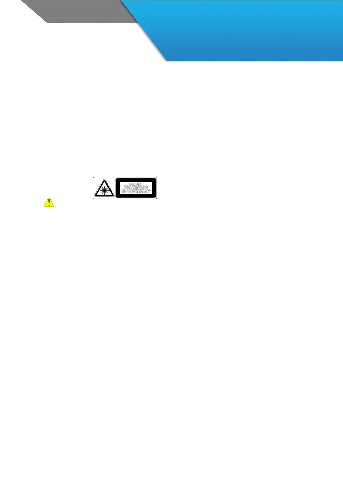 Do not flashing scanner light in human and animal’s eyes. It could cause the damage of retina and amblyopia.