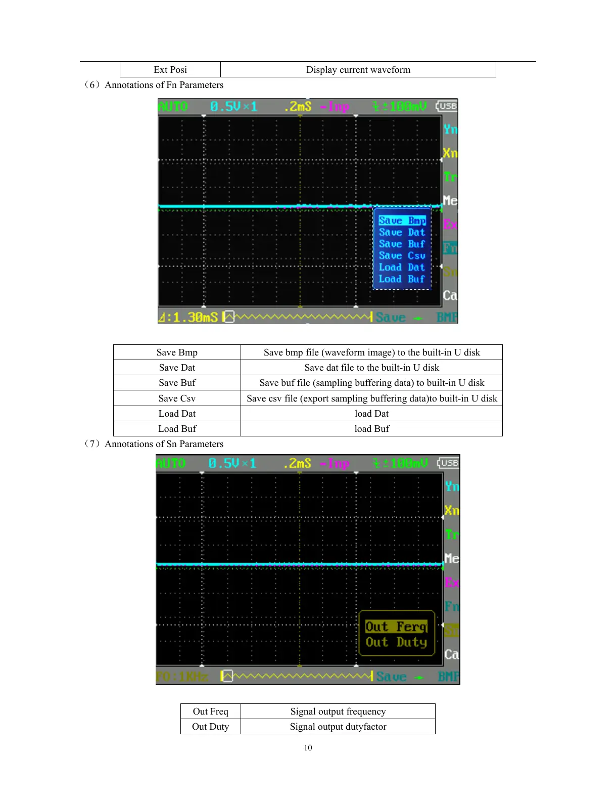 Save Bmp Save bmp file (waveform image) to the built-in U disk
