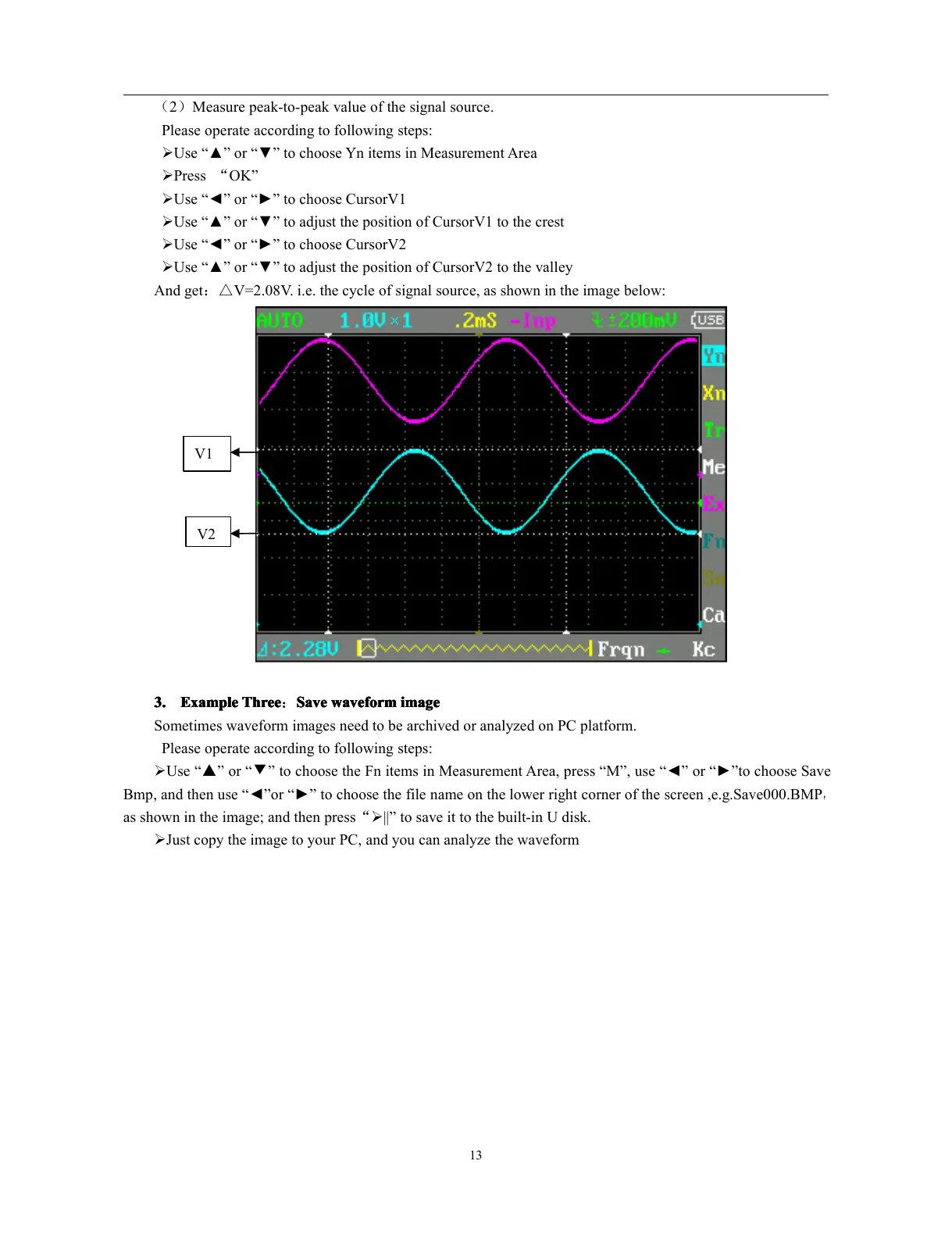 � Use “ ▲ ” or “ ▼ ” to adjust the position of CursorV1 to the crest