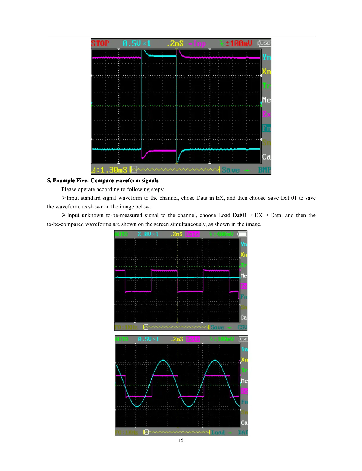 � Input standard signal waveform to the channel, chose Data in EX, and then choose Save Dat 01 to save