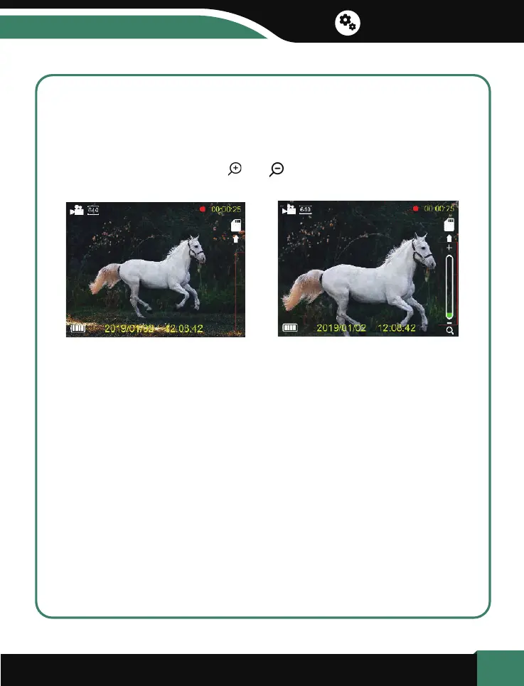 der Wert der Vergrößerungsstufe wird auf dem LCD-Bildschirm angezeigt.