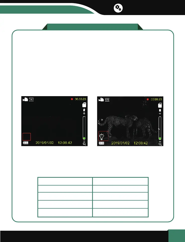 blanco y negro. Los LED IR tienen siete niveles, presione brevemente el botón