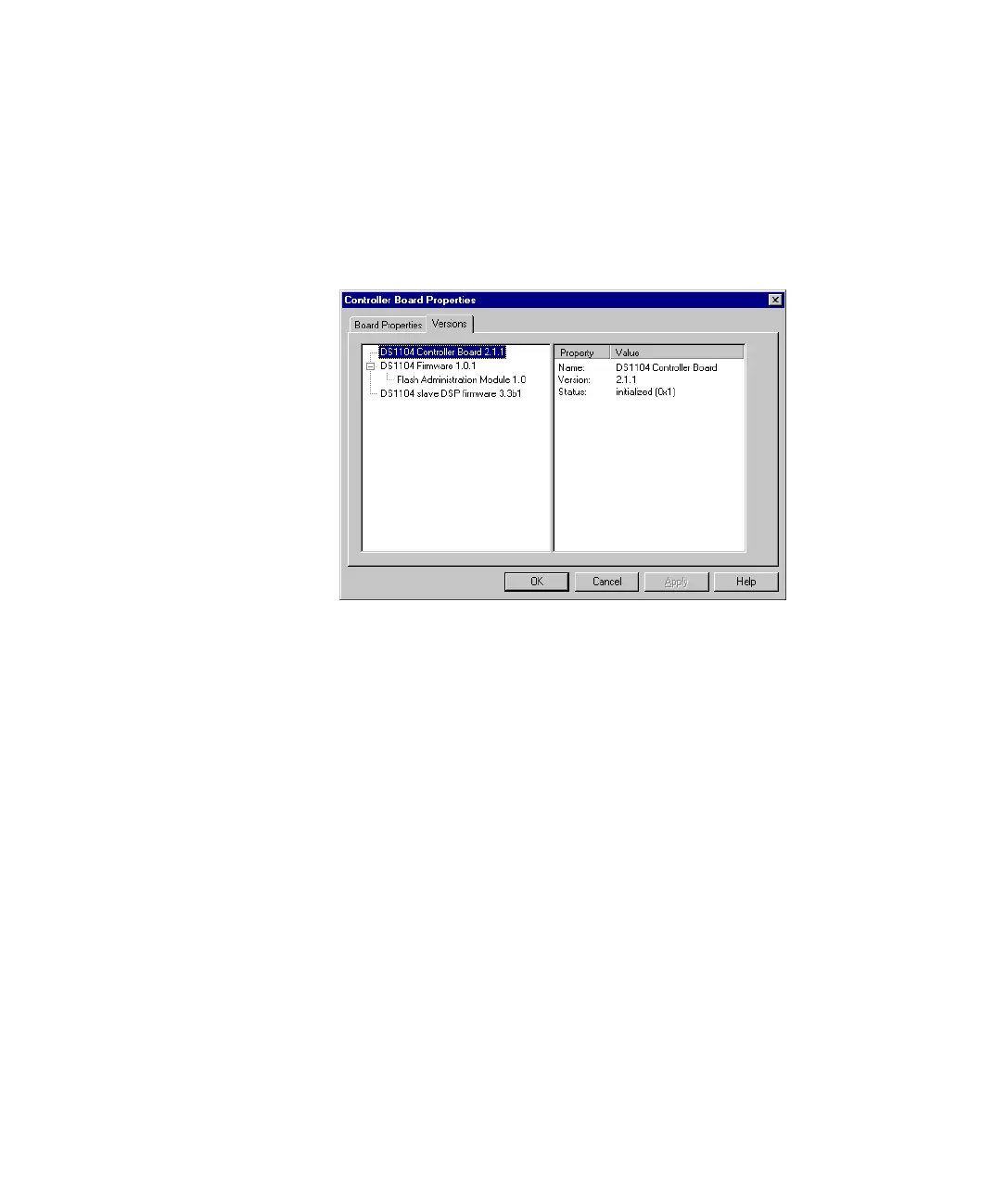 Initializing a DS1104 some properties of the board are entered into the