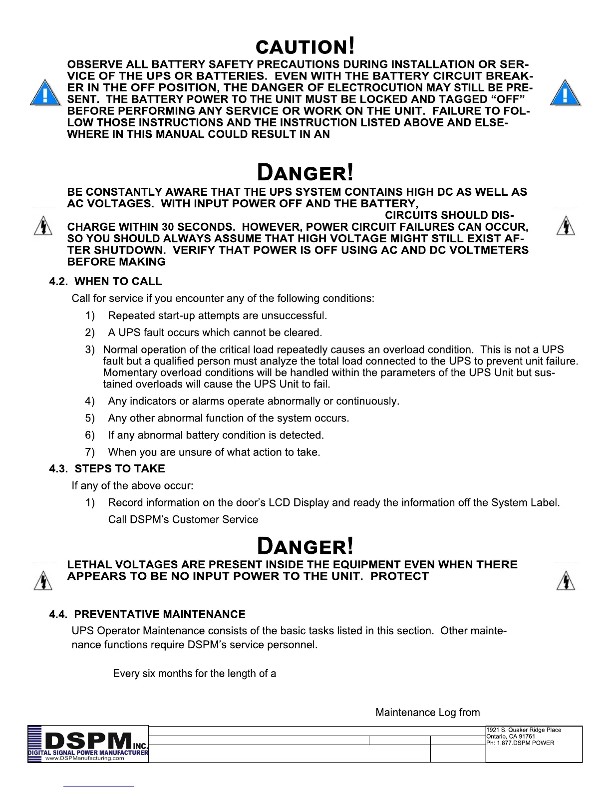 be tested and measurement taken log in a Operator’s/Maintenance Log. Failure