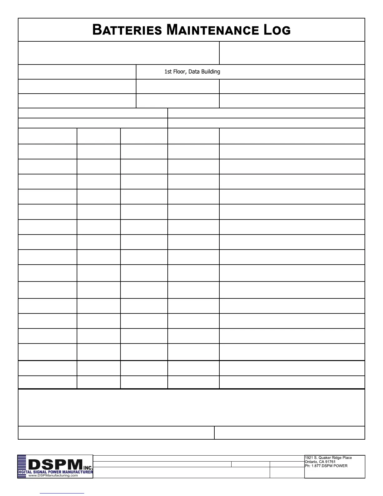 DSPM Defender Plus Online - Log 1-Batteries Maintenance Log