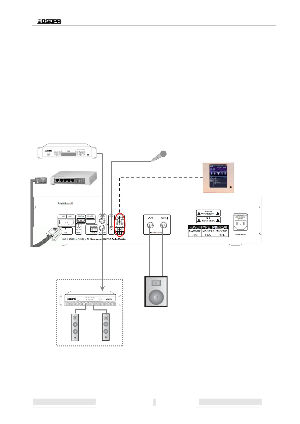 the external sound source and other power amplifiers. The MP3 player and network audio stream in this machine