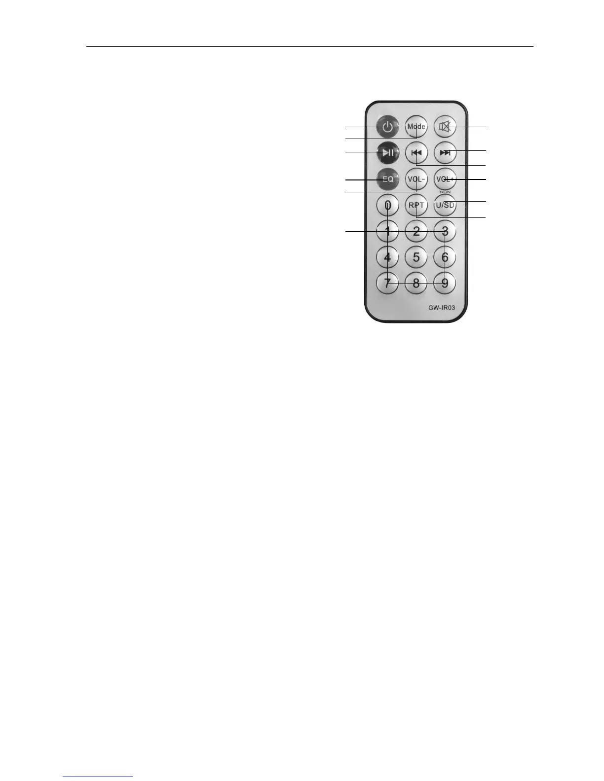 10. 0-9 numerical keys: They are used to input the serial number of MP3 chapter and memorizing number of tuner20