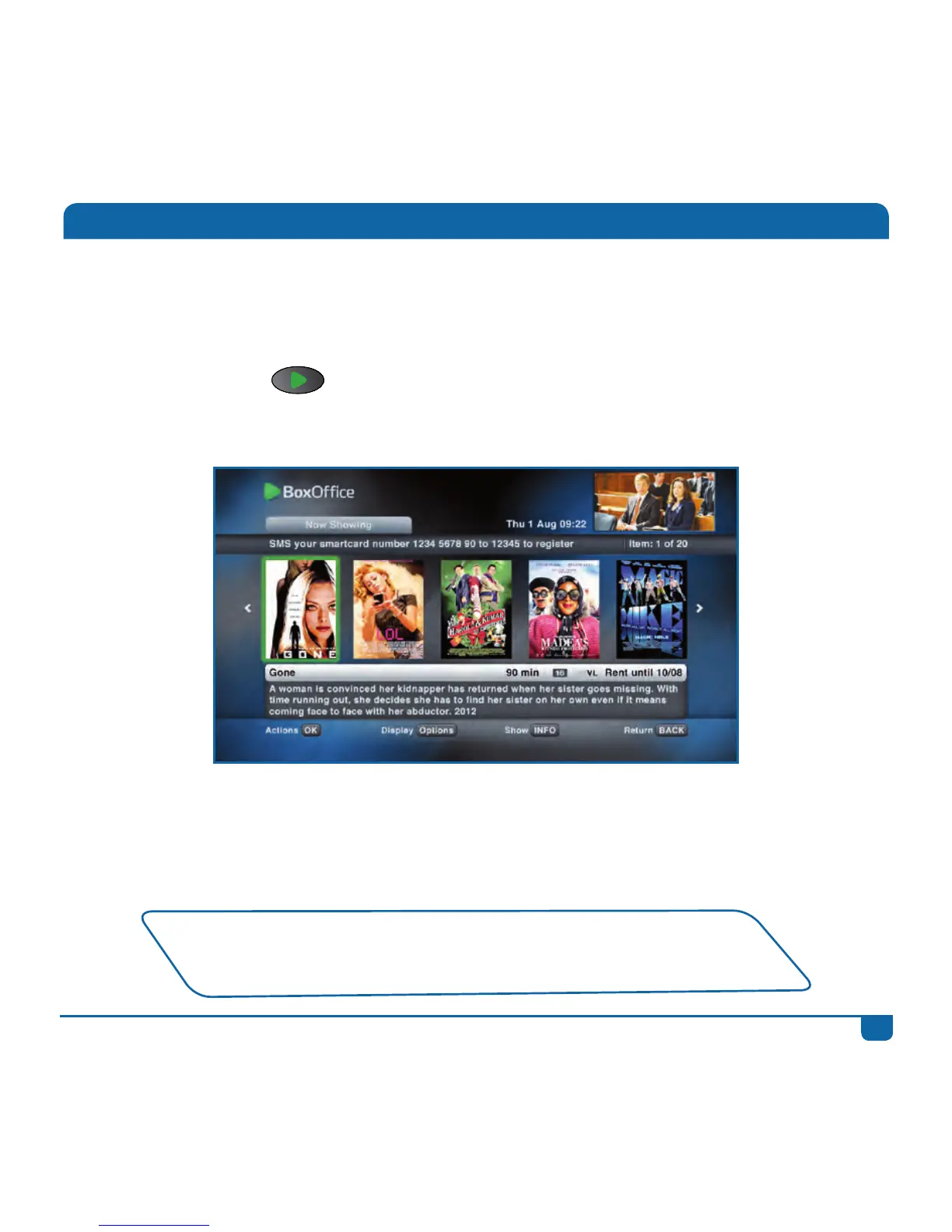 PresstheBOXOFFICE buttontogodirectlytotheselectionofavailablemovies.