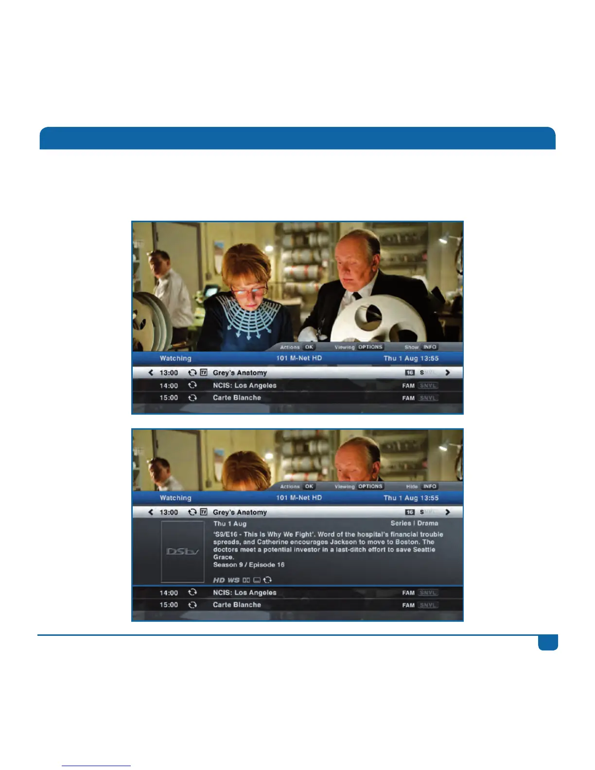 Toseethetitleoftheprogrammeyou’rewatching,pressi.Foradditionalinformationaboutthe