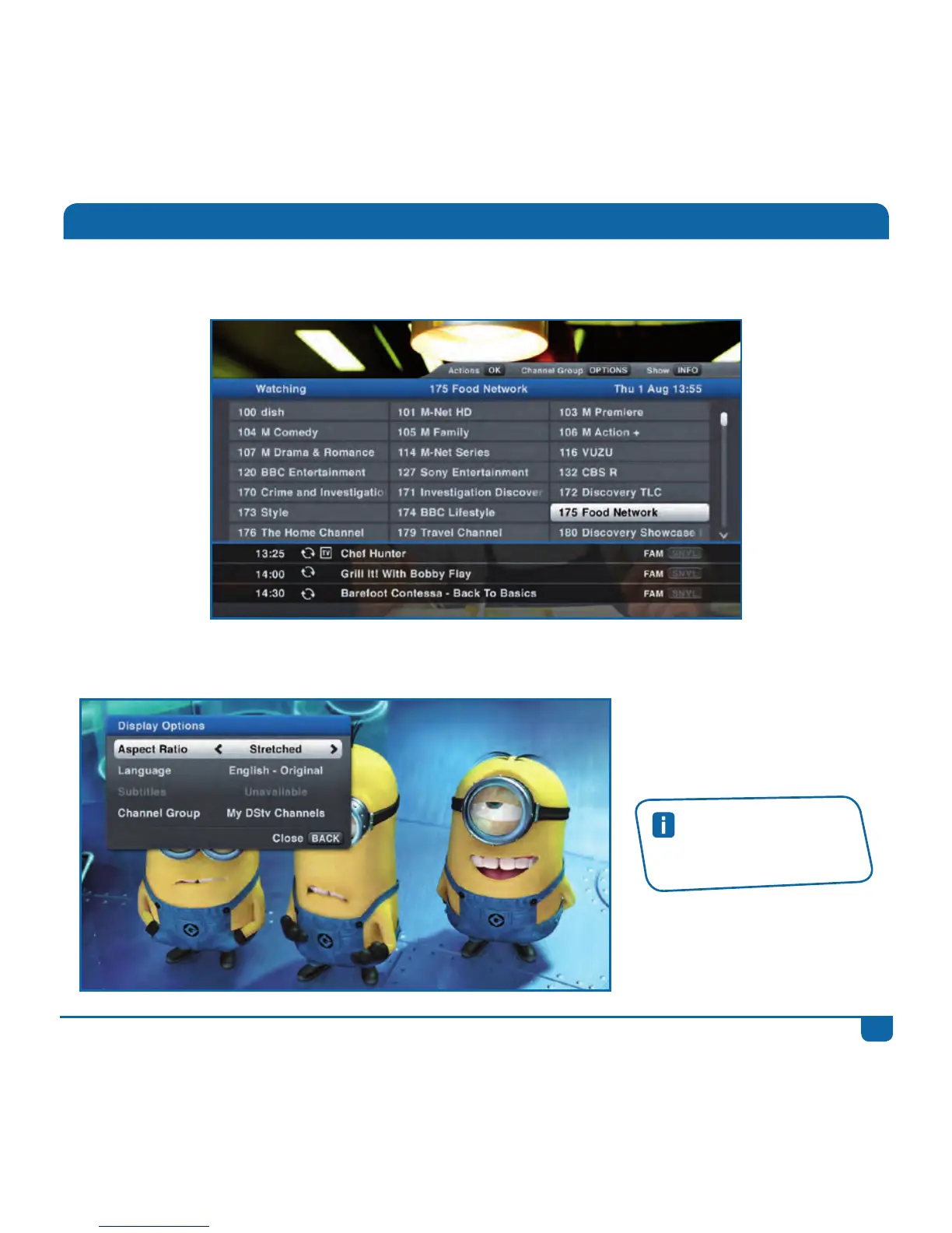 Tochangetheaspectratio,selectanotherlanguageortodisplaysubtitles,pressOPTIONS.
