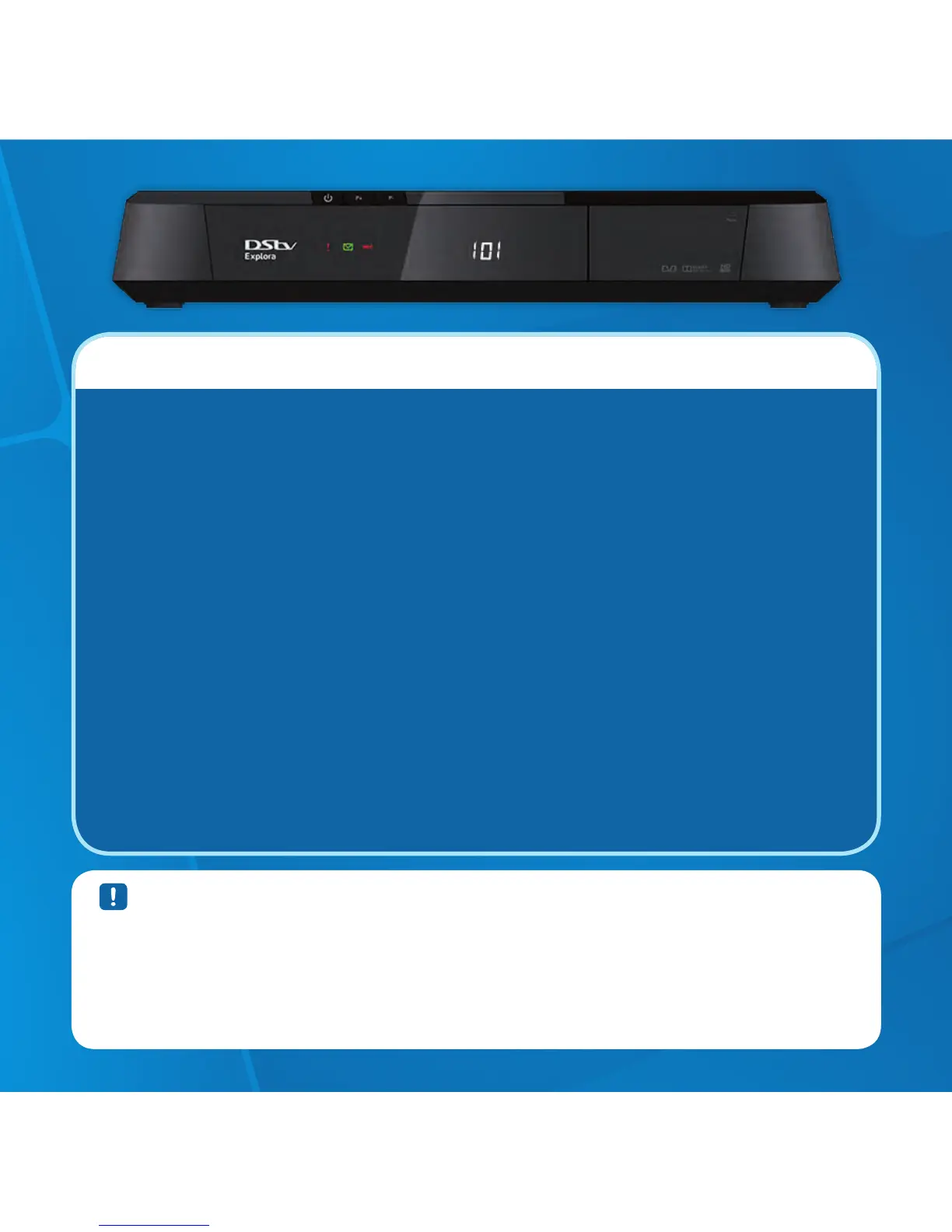 • ThereisnoDStvCatchUporBoxOfficecontentwhentheDStvExploraisfirstinstalled.This