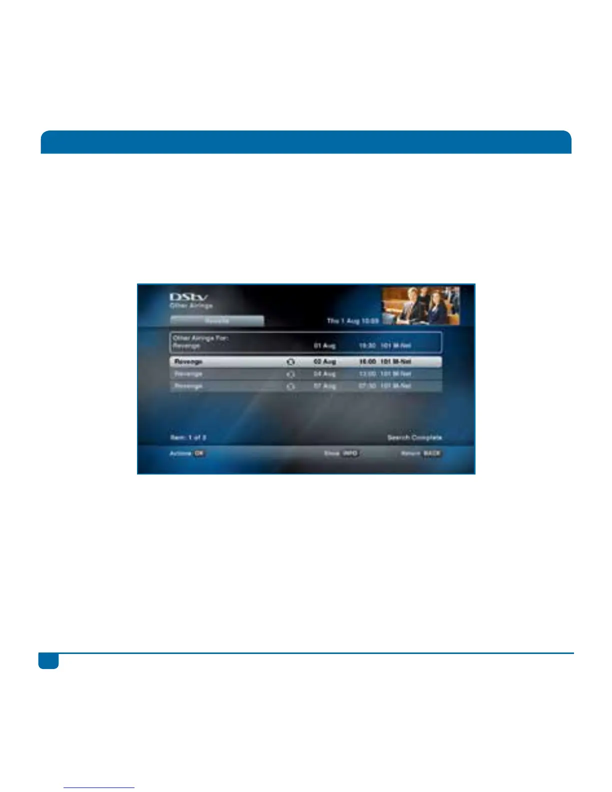 A great feature of the DStv Explora is being able to find out when a programme is on again within