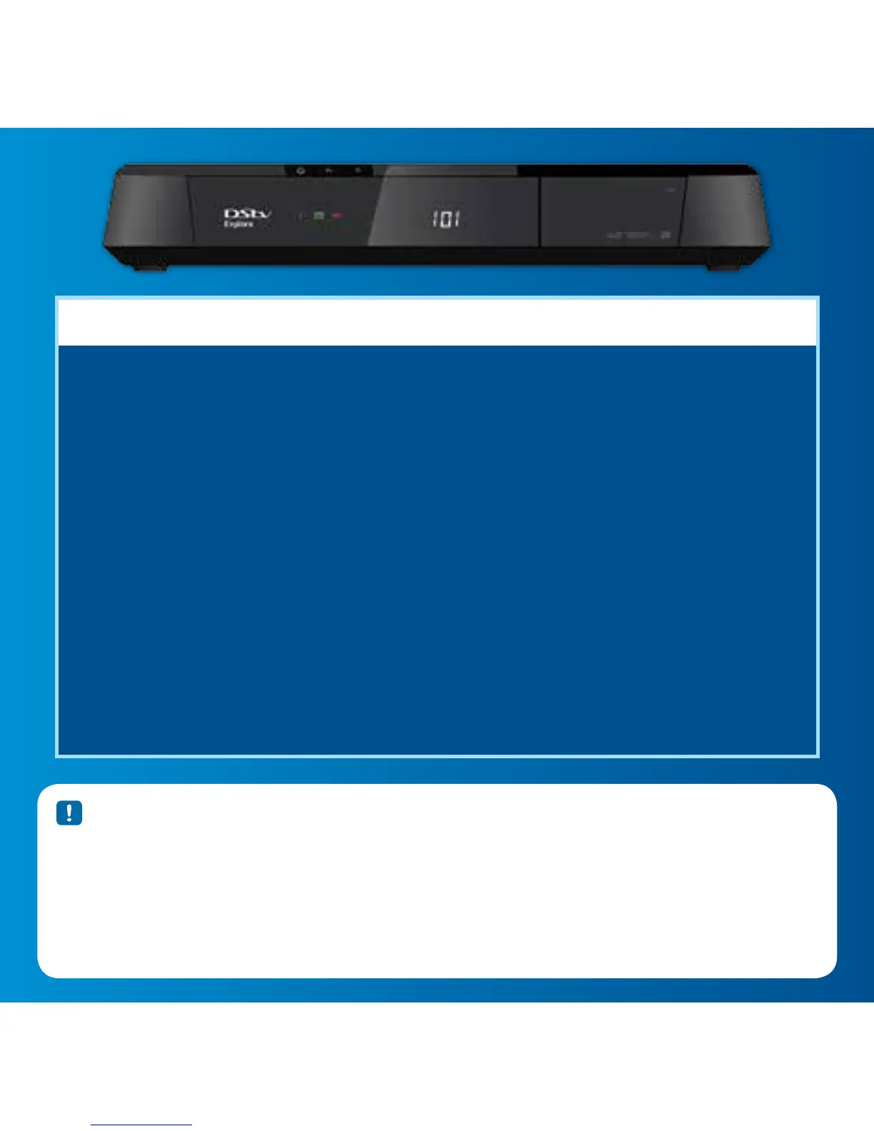 • There is no DStv Catch Up or BoxOffice content when the DStv Explora is first installed. This content will