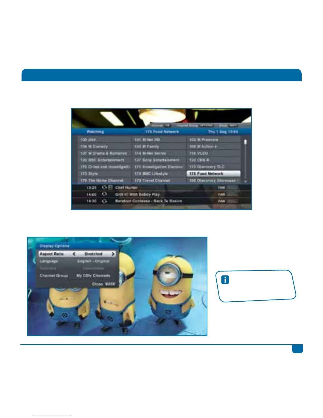 To change the aspect ratio, select another language or to display subtitles, press OPTIONS.