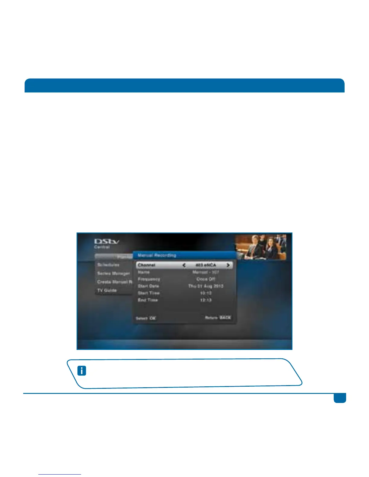 Recordings” from “Planner” and schedule the recording as required. Manual Recordings can be