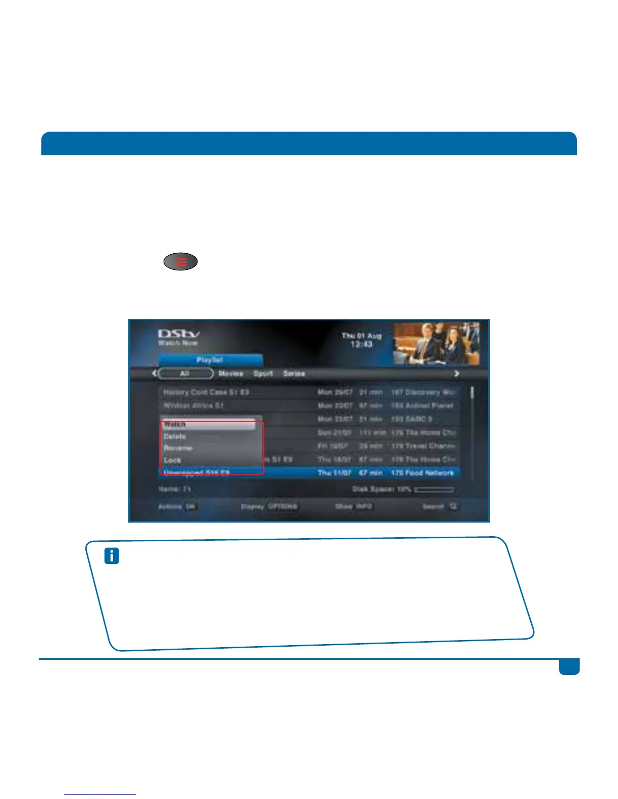 • You can lock your recordings to prevent them being accidentally deleted. Press OK