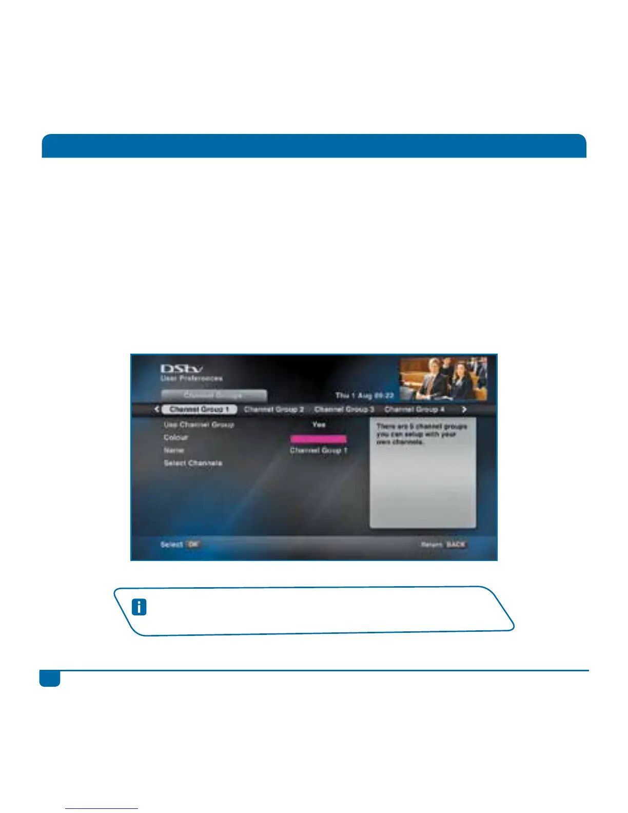 Press the DStv button and go to “User Preferences” in “Settings”. Then select “Channel Groups”.