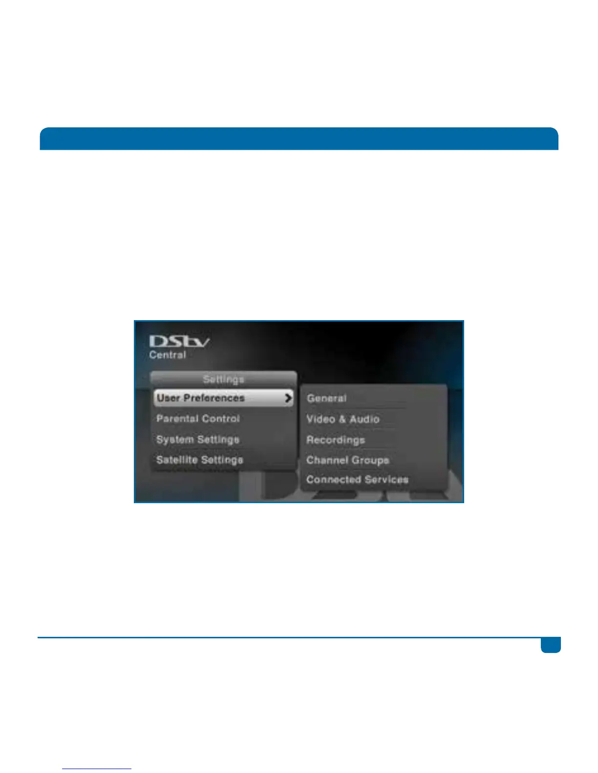 Press the DStv button and go to “User Preferences” in “Settings” to set your preferences for default