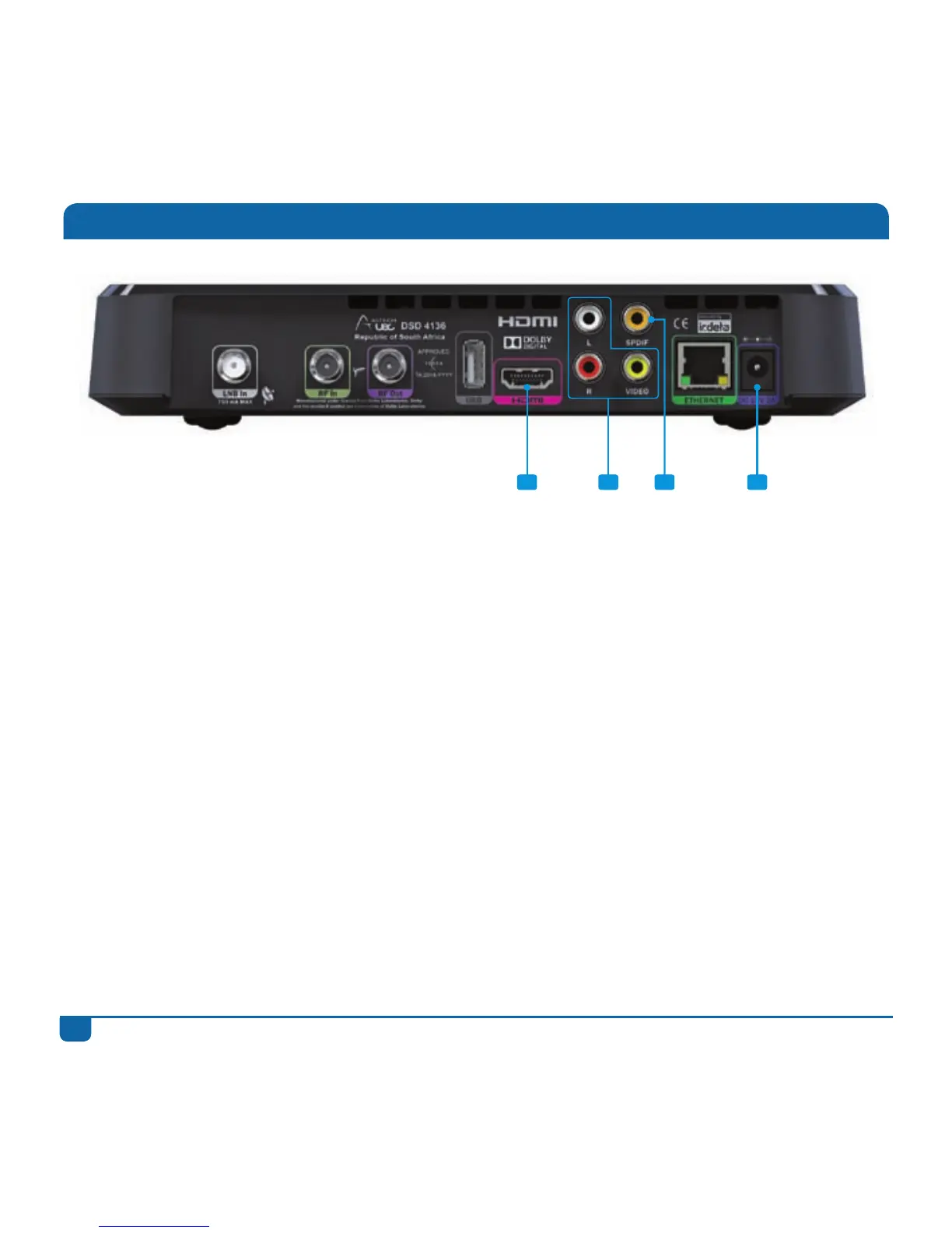 2. (Optional) Connect the decoder to your home theatre system using the SPDIF port (marked 3) on