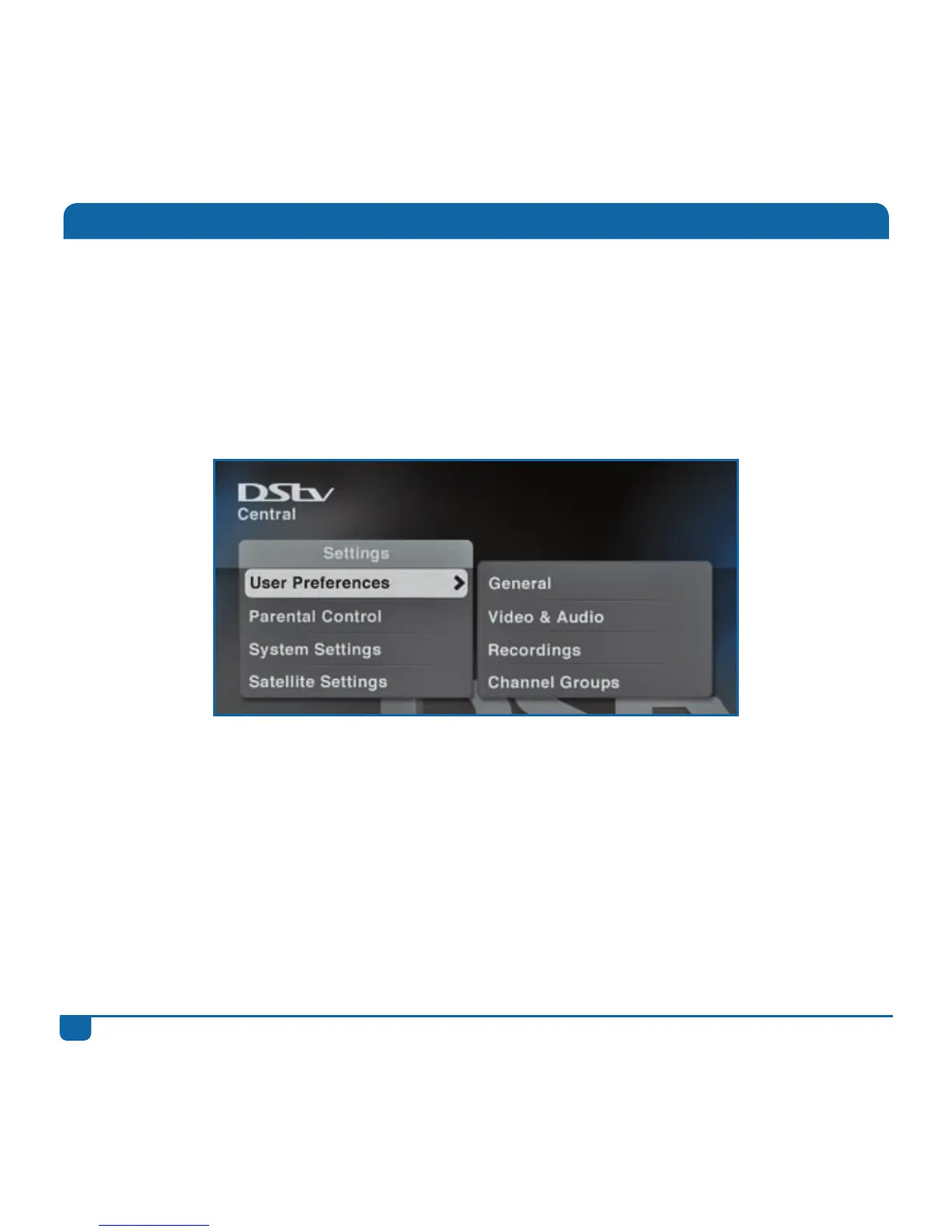 Press the DStv button and go to “User Preferences” in “Settings” to set your preferences for default