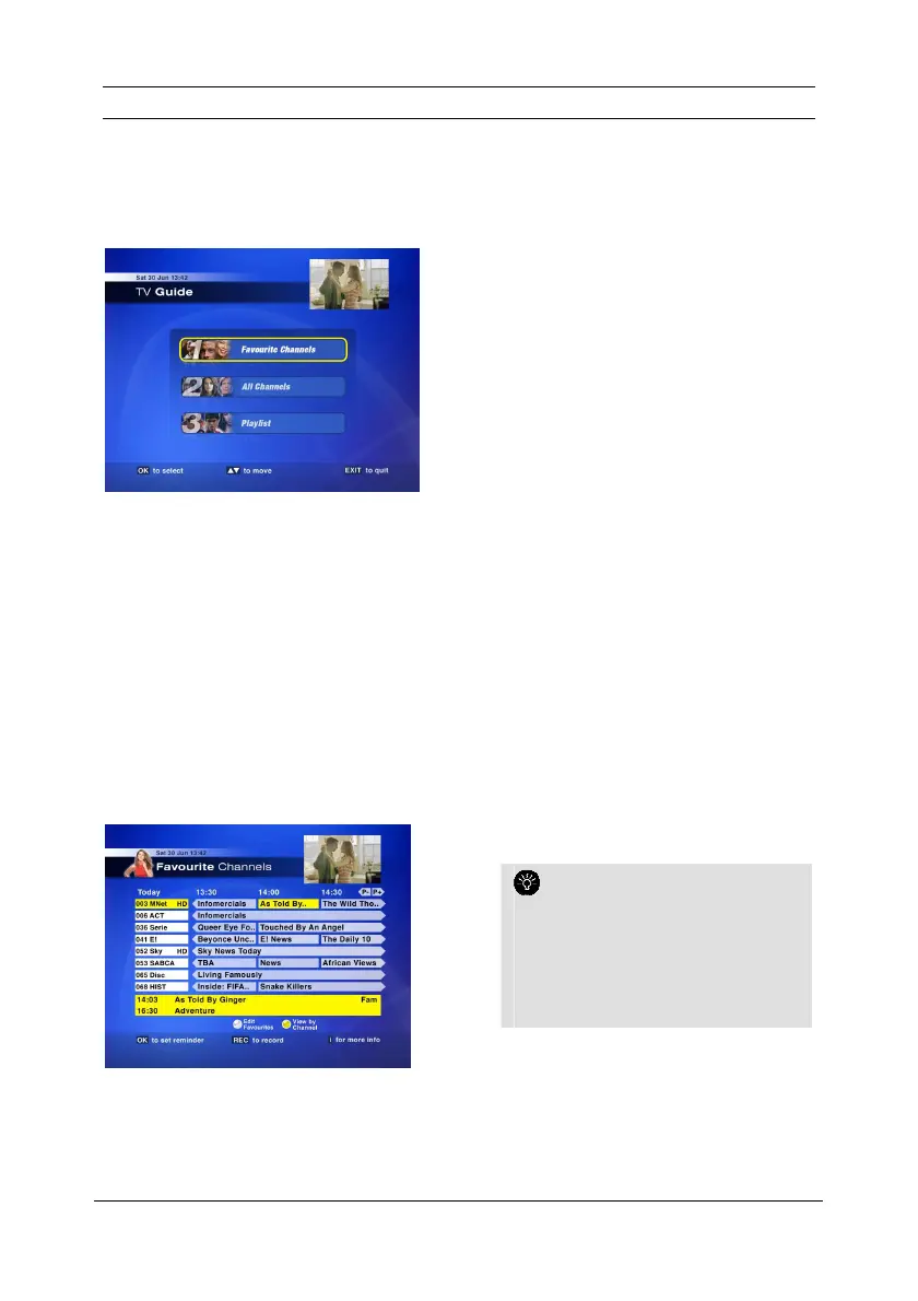 Once you have selected your Favourite Channels, a personalised TV Guide is displayed.