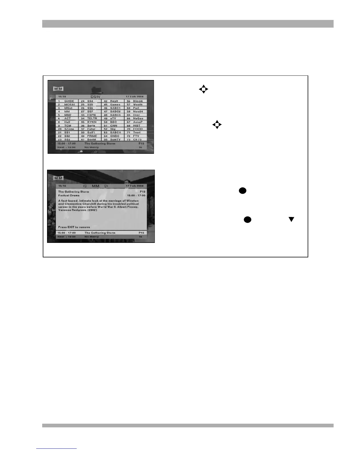 The channel grid displays a list of all available channels in the DStv Bouquet and is a quick way to