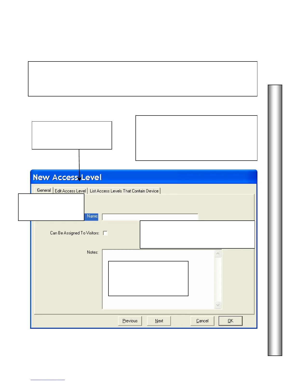 and at what times on those days the card or code will allow entry. The Edit Access Level Tab is