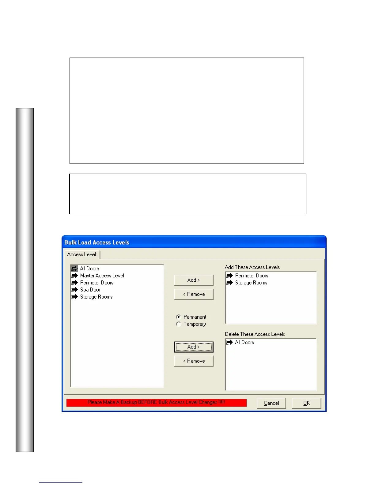 shown in the "Delete These Access Levels" window are the ones removed