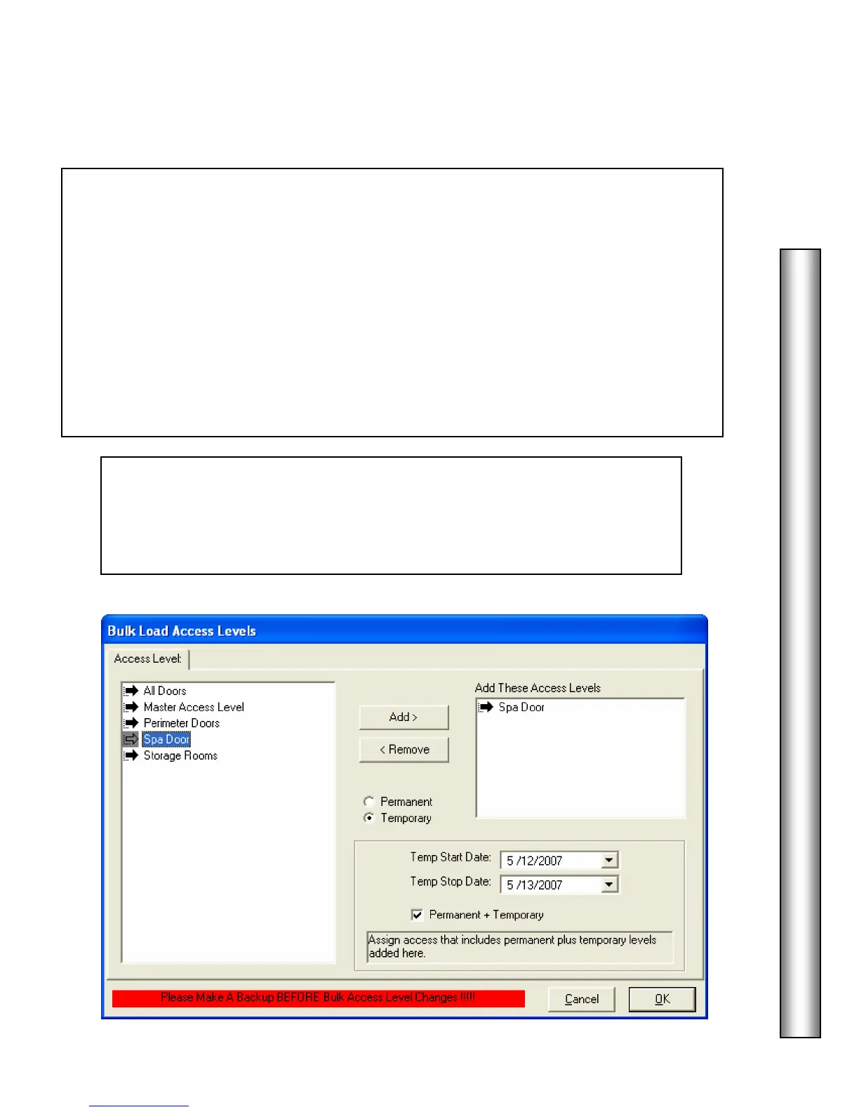 To Add Temporary Level(s), Select the Access Level you wish to add from the Access Level