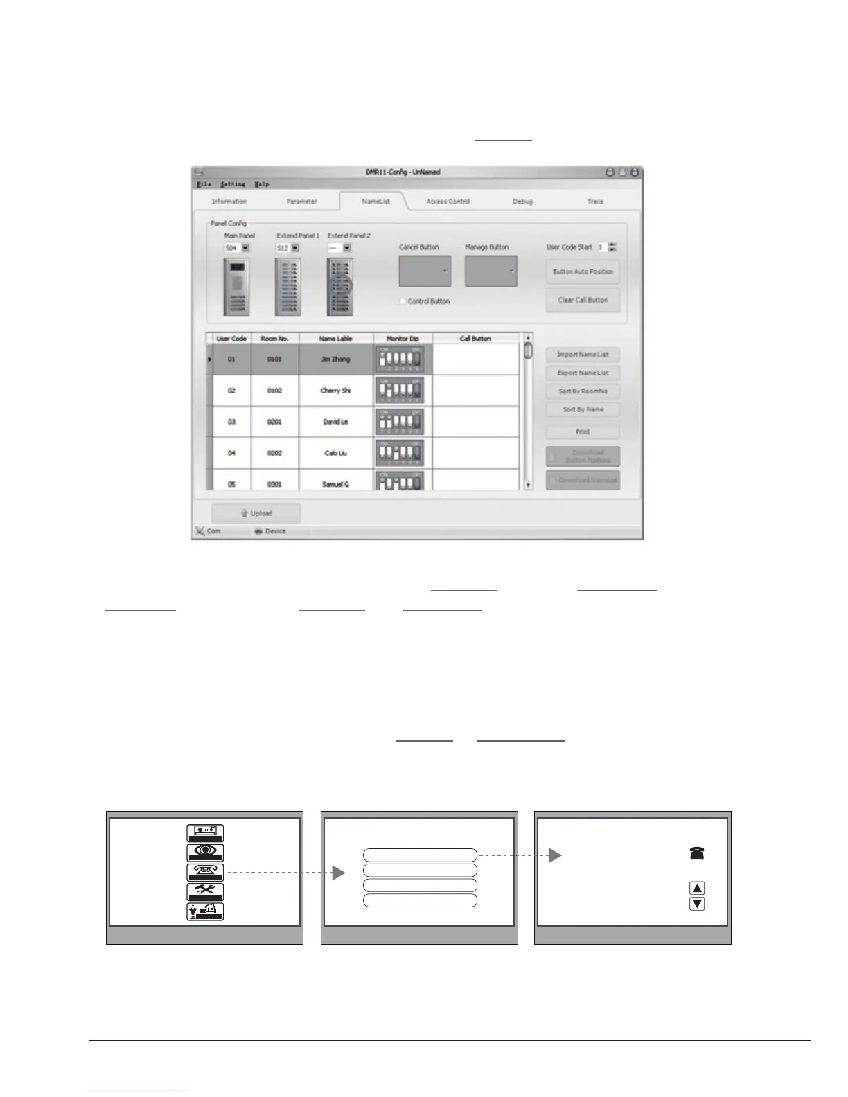 Step 3: Calling people using the namelist. After downloaded from the PC, every Monitor will have a builtin namelist.
