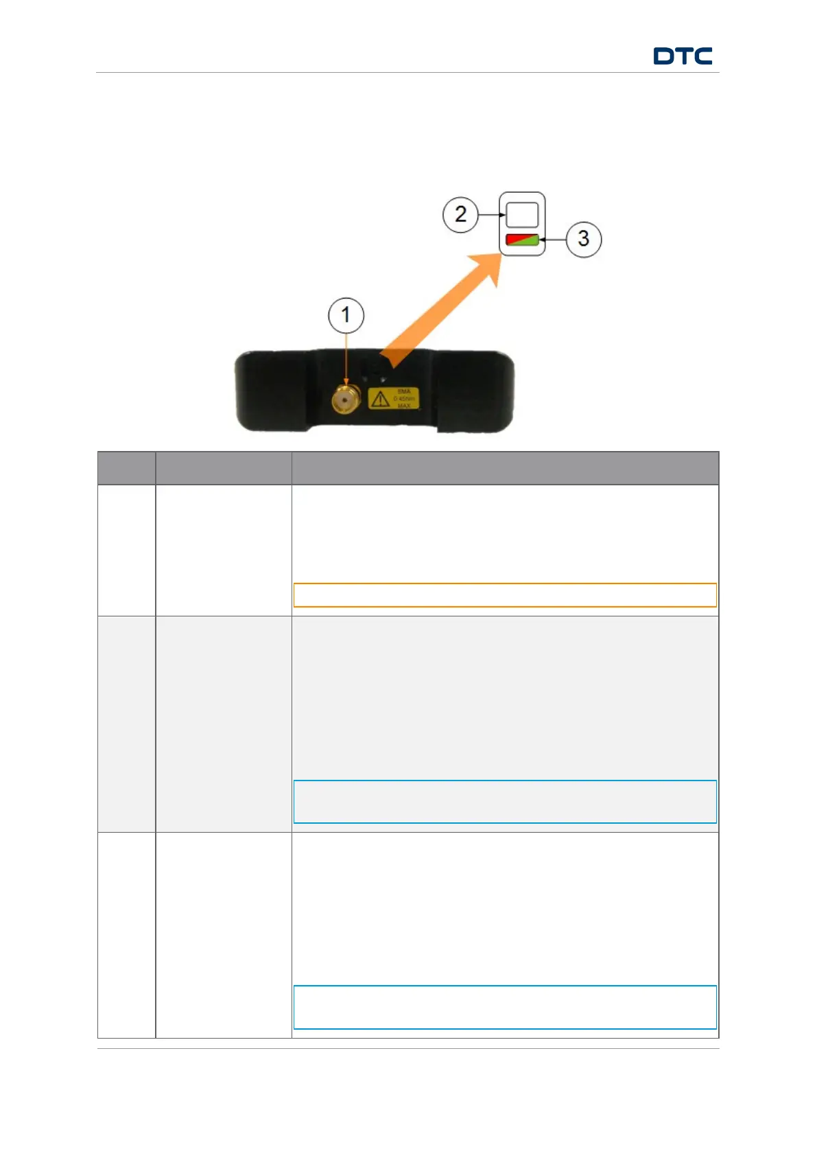 The green LED is used to indicate the RF input status: