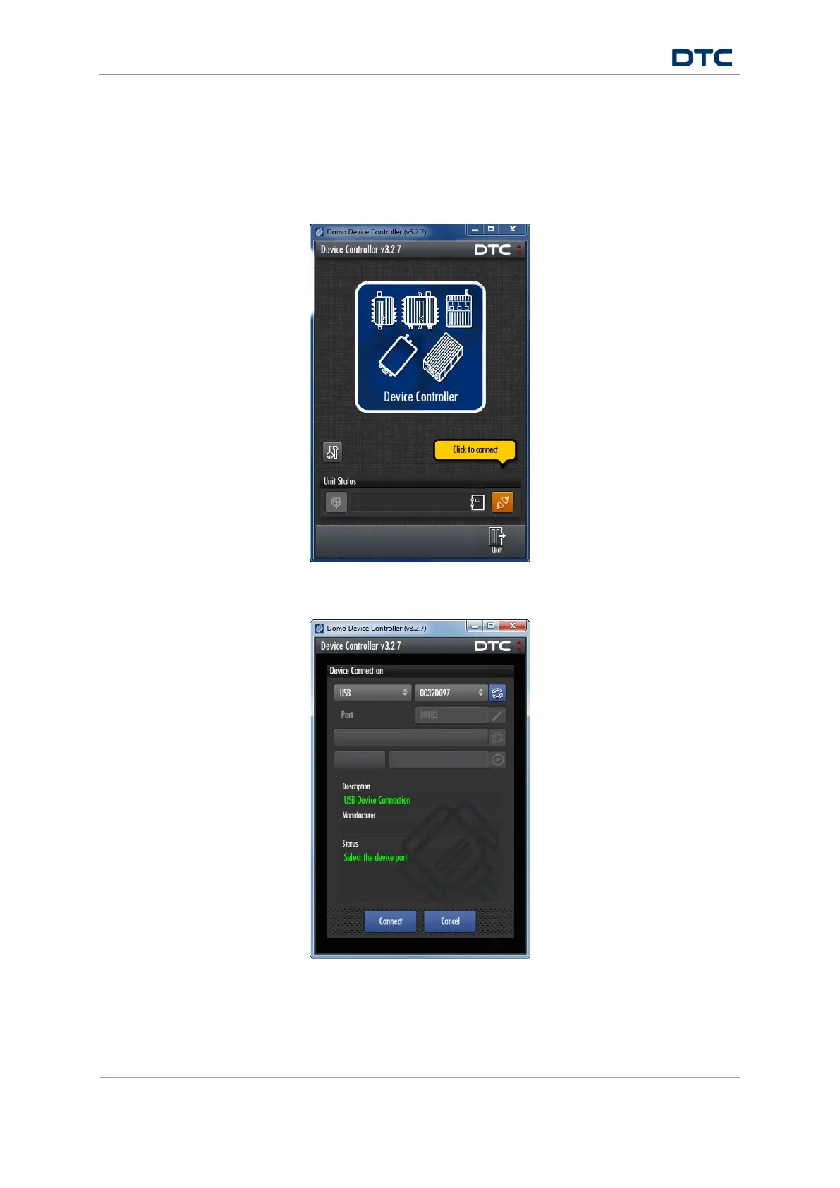 Select USB or Serial Port in the device connection window (dependent on your device connection). You’ll see