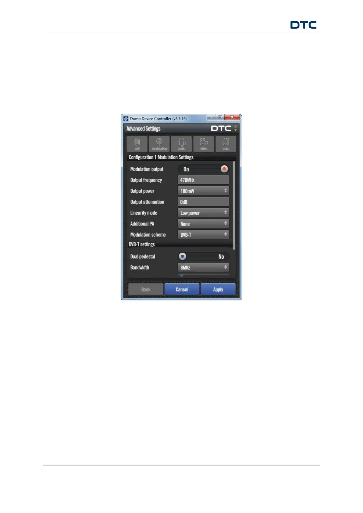5.5.1 Open the Advanced>Modulation Window