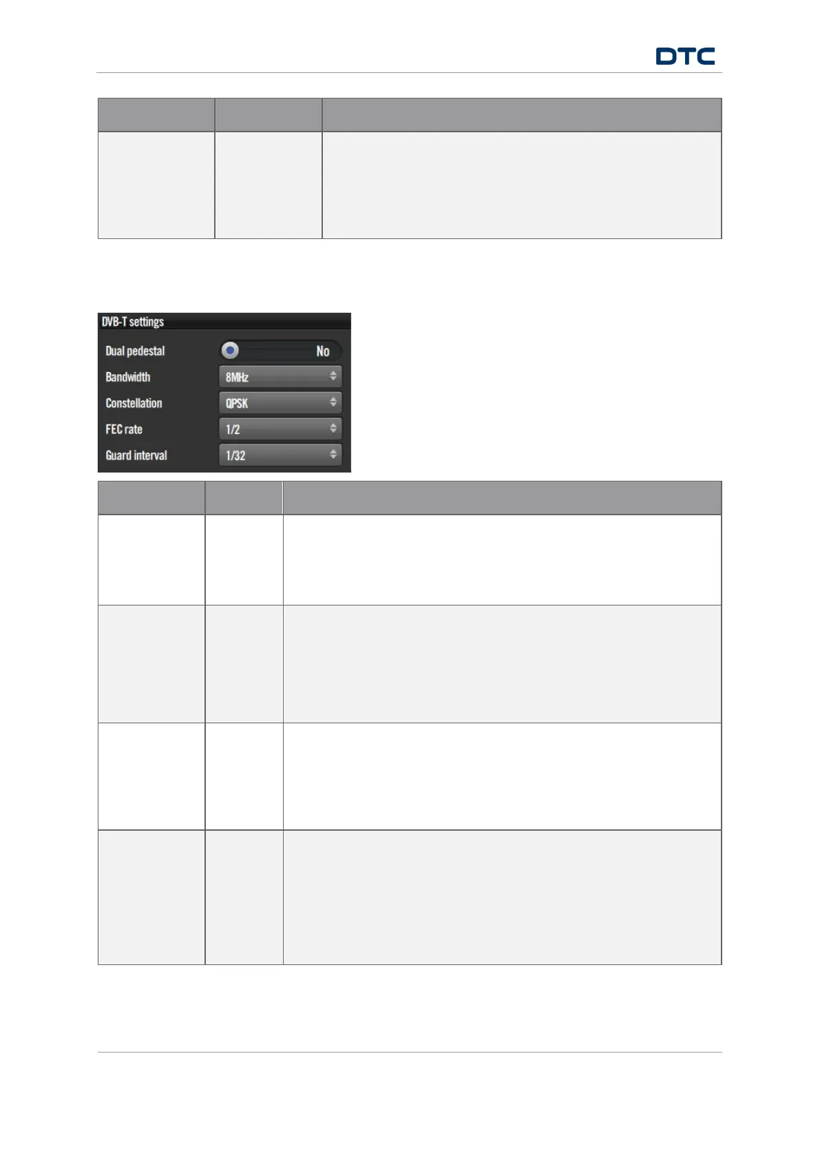 If you selected DVB-T for the Modulation scheme, these settings need to be configured.