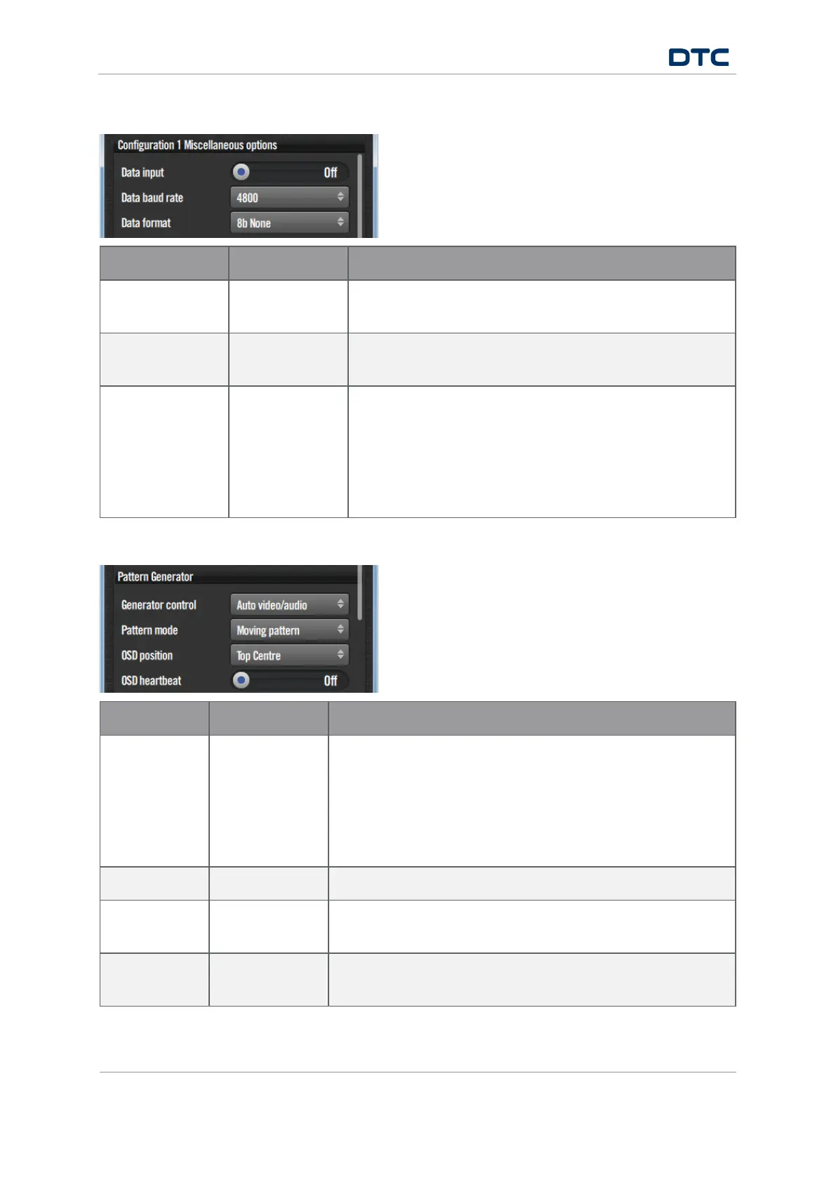 Pattern mode Various A list of choices of pattern generator display.