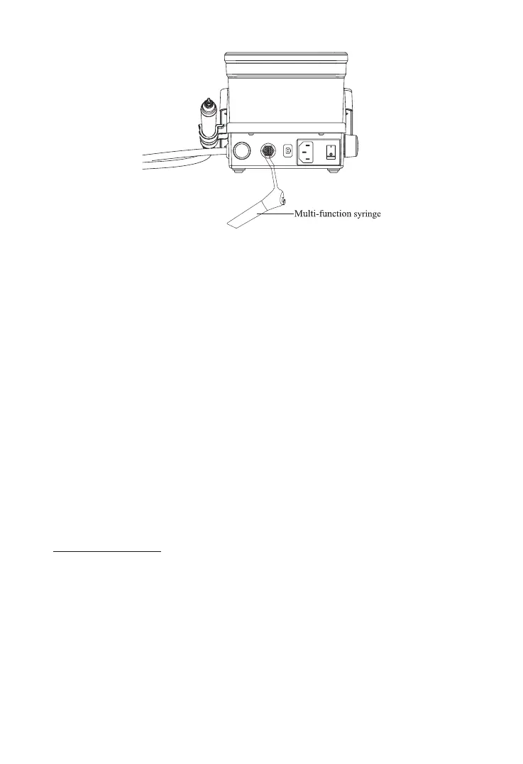 f) Turn on the switch of the multi-function syringe, press the air or